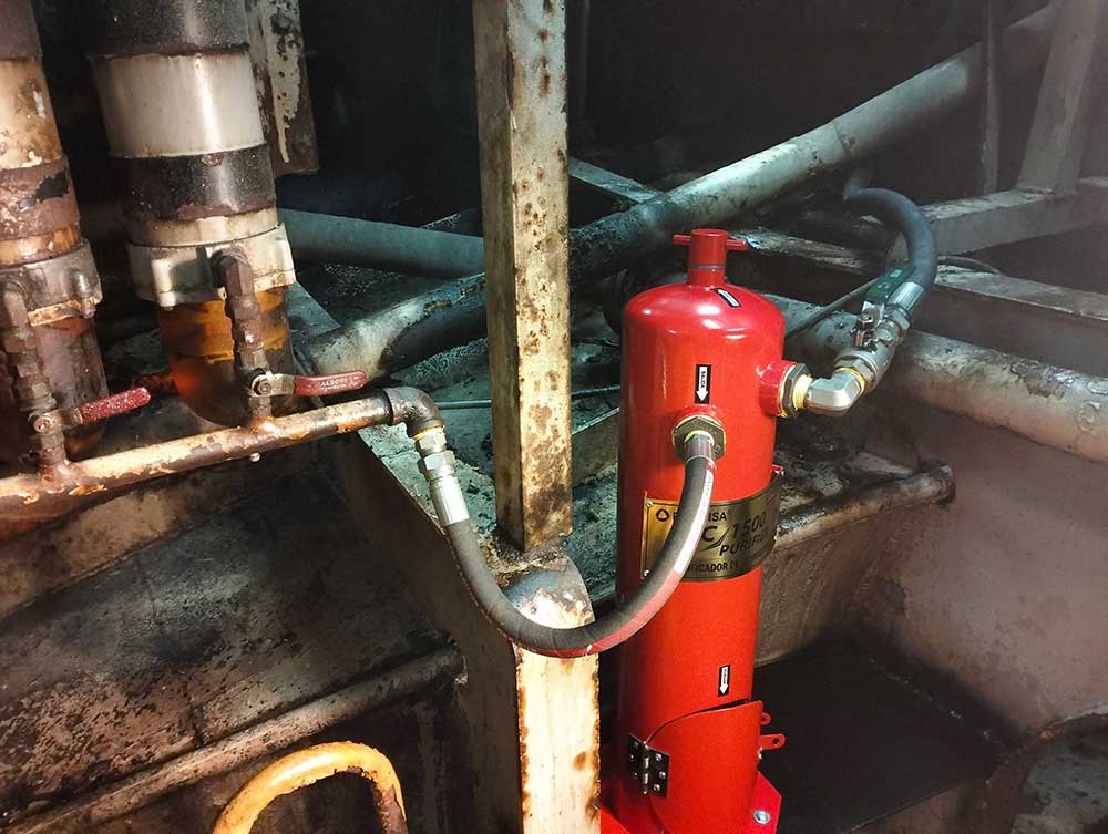 Compatible con motores de hasta 1500 HP, este purificador es clave para mantener operativas maquinarias de gran exigencia en sectores como minería, energía, transporte o construcción pesada.
